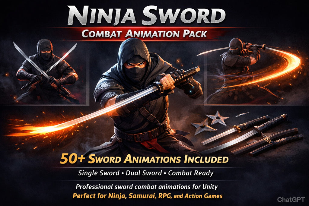 Paquete de Armas Ninja y Más de 50 Animaciones de Combate Crea combates cuerpo a cuerpo intensos y estilizados con este paquete de animaciones de espada ninja, diseñado específicamente para desarrolladores de Unity.Este paquete se centra en el combate con espada simple y doble espada, ofreciendo más de 50 animaciones de alta calidad que son fluidas, responsivas y listas para producción. Ideal para juegos de ninjas, RPG de samuráis, sistemas de lucha y títulos de acción y aventura. 🎯 Qué incluye 🗡️ Armas Espada KatanaConjunto de Katanas DoblesVariantes estilizadas y realistasPrefabs listos para juegosTopología optimizadaMateriales PBR 🎬 Animaciones (Más de 50 en total) ⚔️ Animaciones con espada simple Inactivo (combate y relajado)Caminar / correr con espadaDesenfundar / enfundarConjunto de combos de ataque ligeroVariaciones de ataque pesadoCorte cargadoAtaque en saltoCorte con embestidaCorte giratorioBloqueo / paradaReacciones a impactosAnimaciones de muerte ⚔️ Animaciones con doble espada Inactivo dualCaminar / correr dualCadenas de combos dualesAtaques de corte cruzadoAtaques giratoriosFinalizadores pesados dualesGolpe dual con embestidaBloqueo / defensa dualAtaques especiales duales ⚙️ Configuración de animaciones ✅ Compatible con rig humanoide✅ Listo para Mecanim✅ Incluye versiones con Root Motion✅ Incluye versiones en el lugar (In-Place)✅ Transiciones suaves para sistemas de combos✅ Curvas de animación limpias ⚙️ Detalles técnicos Compatible con Unity 2021+Soporte para Built-in / URPOptimizado para móvil, PC y consolaEstructura de carpetas organizadaEscena de demostración incluidaFácil retargeting a personajes personalizados 🎮 Perfecto para Juegos de combate ninjaRPG de samuráisJuegos de luchaProyectos hack & slashTítulos de acción y aventuraSistemas multijugador de combate con espada 🚀 Por qué este paquete destaca ✔ Gran biblioteca de animaciones (50+ movimientos)✔ Diseñado específicamente para sistemas de combate cuerpo a cuerpo✔ Incluye estilos de espada simple y doble✔ Listo para jugabilidad basada en combos✔ Ahorra meses de trabajo de animación